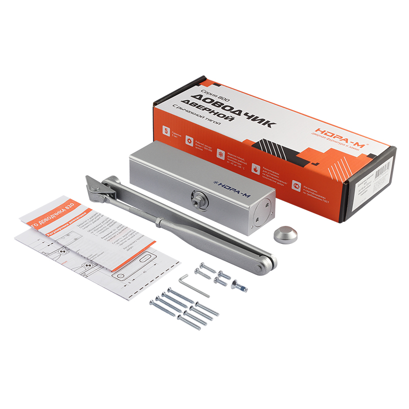 Комплектация и упаковка Дверной доводчик 820 от 40 до 120 кг цвет Серебро Нора-М